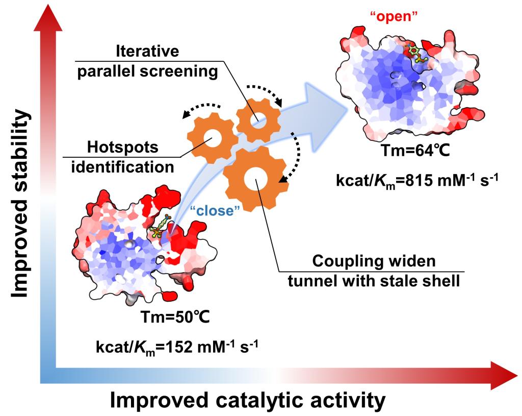 工业发酵生产需要在极端高温和pH值等恶劣条件下高效且稳定的酶,然而,由于天然酶受自然进化的限制,无法满足实际工业应用的条件,此外在设计天然酶来提高稳定性通常会导致催化活性的丧失,反之亦然,即所谓的活性-稳定性权衡,极大地限制了酶生物技术的发展。
