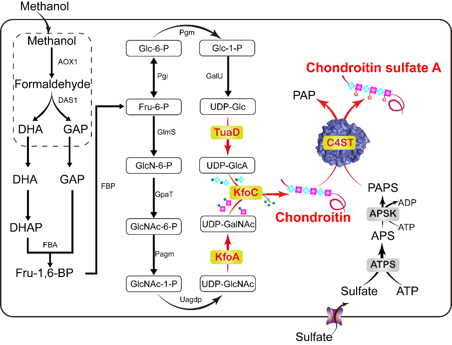 图3毕赤酵母中硫酸软骨素合成示意图