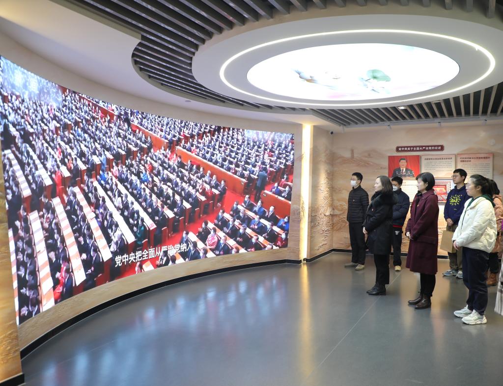 党员们首先观看了2023年滨湖区警示教育专题片,随后学习了馆内反腐历程、纪法条规、典型案例、警示忏悔、时代楷模、先贤事迹等六个篇章的内容。依托丰富的图片、鲜活的视频、详实的资料、生动的讲解,借助案件重现、情景互动、场景还原等方式,党员们认真学习了十八大以来党的反腐历程、党中央全面从严治党战略部署及滨湖区全面从严治党实践成果。