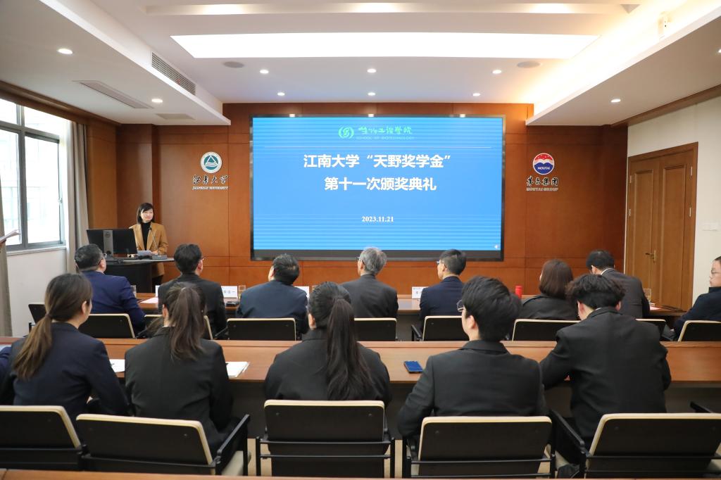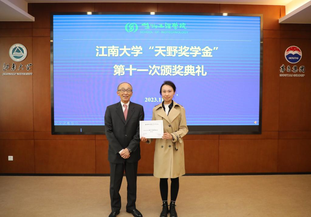 11月21日下午,万象城娱乐allwincity体育“天野奖学金”第十一次颁奖典礼在万象城娱乐allwincity体育茅台厅举行。日本天野酶制品株式会社董事长天野源之先生、海外市场部部长丰增敏久、天野酶制剂(江苏)有限公司总经理小林俊一、上海分公司负责人王友谊,万象城娱乐allwincity体育未来食品科学中心首席科学家陈坚院士、万象城娱乐allwincity体育党委书记程捷音、院长刘龙、李江华教授及获奖学生出席颁奖典礼。颁奖典礼由学院党委副书记、副院长林丹主持。