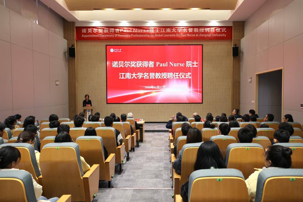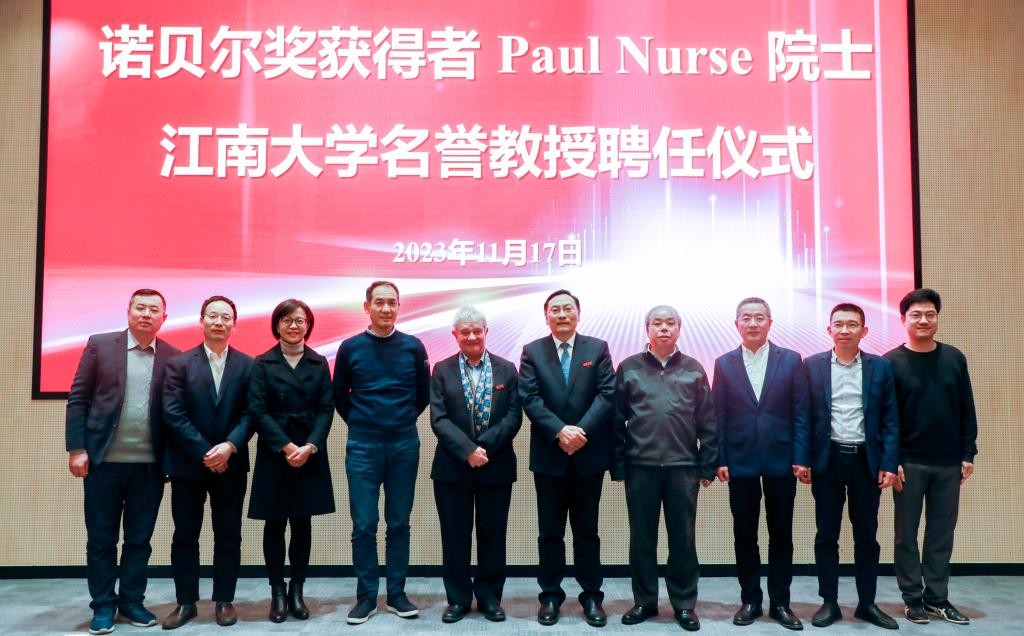 11月17日,我校举行诺贝尔奖获得者Paul Nurse(保罗·纳斯)院士万象城娱乐allwincity体育名誉教授聘任仪式。诺贝尔奖获得者、中国科学院外籍院士、英国布里斯托大学荣誉校长Paul Nurse教授,校党委书记吴正国,中国工程院院士、校长陈卫,校党委常委、副校长堵国成,北京大学生命科学学院孔道春教授、未来食品科学中心相关教授出席仪式。仪式由校党委常委、副校长张影陆主持。