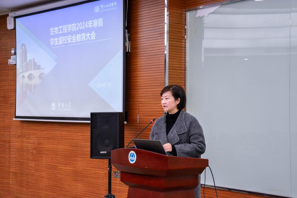 编好全体学生“护卫链”。1月17日下午,学院召开寒假留校学生安全教育大会。学院党委副书记、副院长林丹,心理健康教育辅导员王珏,各班级主要班干部、学生宿舍心情预报员、实验室动态观察员共同参与会议。王珏详细解读了《关于2023-2024学年寒假前后学校主要工作安排的通知》以及学校假期留校学生的管理要求。随后,林丹对留校学生代表提出三点要求:一要牢树“安全第一责任人” 意识,寒假期间各位同学要遵守校规校纪,注意人身、财产、宿舍、实验以及出行安全,同时进一步提高防诈意识,做好自己的安全责任人。二要明确留校目标,做好合理规划。要合理规划和利用寒假时间,在科研实验、求职、考研复试、社会实践等事项中,更加积极地与老师联系,寻求有效帮助,促进目标达成。三要劳逸结合,注重全面发展。要合理分配时间,注意劳逸结合,适度调节压力,度过一个幸福、圆满、充实的春节假期。