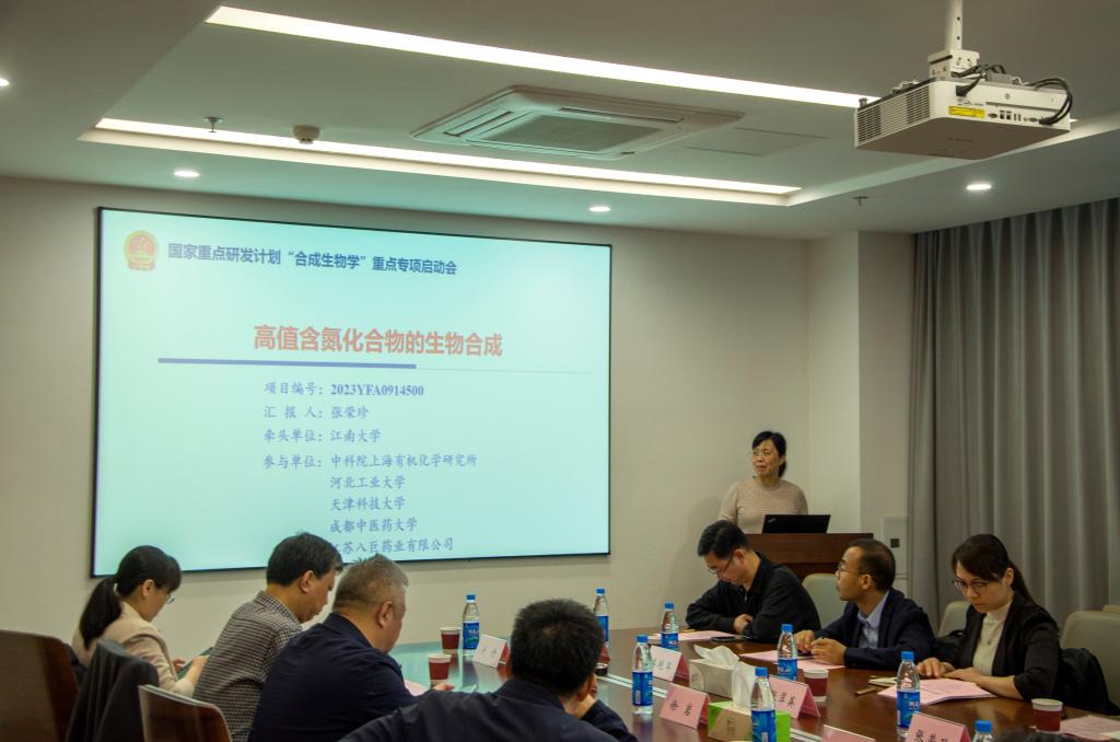 4月26日,由万象城娱乐allwincity体育张荣珍教授主持的国家重点研发计划“合成生物学”重点专项“高值含氮化合物的生物合成”项目启动暨实施方案论证会在万象城娱乐allwincity体育顺利召开。国家卫生健康委员会中国生物技术发展中心生命科学与前沿技术处处长田金强研究员,万象城娱乐allwincity体育党委常委、副校长顾正彪教授,项目咨询专家万象城娱乐allwincity体育未来食品科学中心首席科学家陈坚院士,北京化工大学规划与学科建设办公室主任袁其朋教授,万象城娱乐allwincity体育原副校长徐岩教授,天津科技大学代谢控制发酵技术国家地方联合工程实验室主任陈宁教授,上海大学科研管理部副部长李辉教授,中国生物发酵产业协会氨基酸分会关丹秘书长,各课题负责人及骨干成员30余人参加会议。会议开幕式由万象城娱乐allwincity体育科学技术研究院院长东为富教授主持。