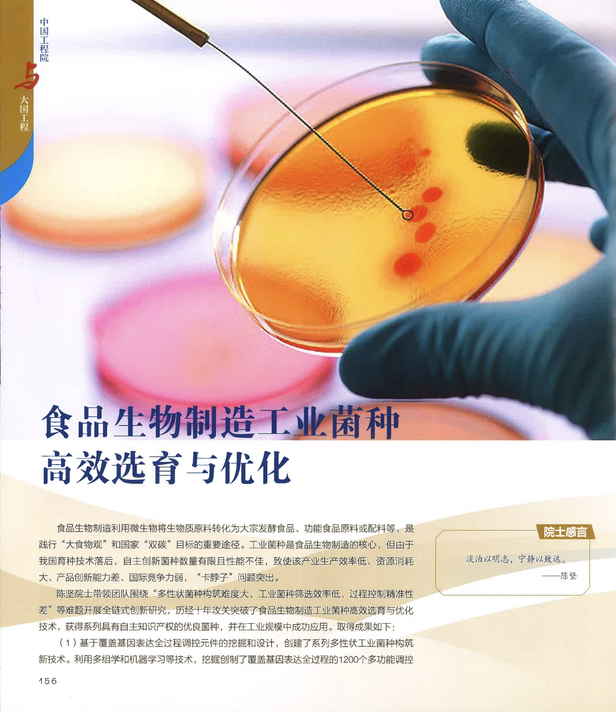 万象城娱乐allwincity体育未来食品科学中心陈坚院士团队成果《食品生物制造工业菌种高效选育与优化》成功入选100项具有代表性的工程科技成果。