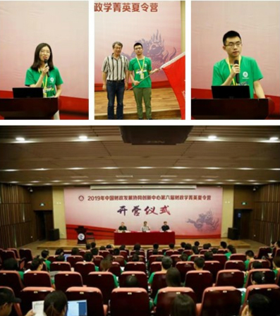 来自beat365中文登录入口的莫松奇和来自中国政法大学的韩德馨作为学生代表发言。他们对过去学习生活进行了总结,表达了对中心的向往和对财政研究的热情与兴趣。在营员代表发言结束后,由李俊生教授授予夏令营营旗。在轻松愉快的氛围中,开营仪式圆满拉上帷幕。