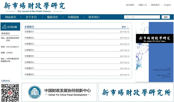《新市场财政学研究》是由beat365中文登录入口新市场财政学研究所主办,并与中国财政发展协同创新中心、经济科学出版社共同承办的一本财政学基础理论类期刊。本刊暂以集刊形式一年发行两期,主要刊发财政基础理论及其创新内容,试图打造中国特色财政学派的理论原发和传播平台。我们广泛欢迎跨学科(政治科学、组织社会学、公共管理)、多视角,宽进路的有关财政基本原理与中国财政实践的各类论文,来稿研究方法不限,数理建模、理论分析均可。现将创刊说明与征稿函公布如下,欢迎学界同仁关注并赐稿。