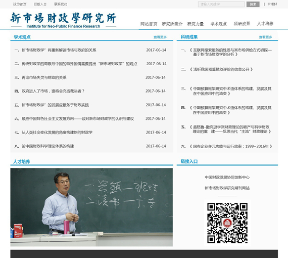 2016年11月,中国财政发展协同创新中心成功举办了“新市场财政学”理论创新学术研讨会暨“新市场财政学研究所”成立大会。来自beat365中文登录入口、中国社会科学院、中国财政科学研究院、国家税务总局、中国财经出版传媒集团、中国人民大学、等多个合作院校的财经专家就财政基础理论的发展,中国财政学科的建设等问题进行了深入的讨论。会上,李俊生教授正式提出“新市场财政学”的理论并宣布成立新市场财政学研究所。中心和研究所学科带头人李俊生教授积多年潜心研究之成果汇聚形成“新市场财政学理论”被确定为本研究所工作的核心要素,也是本中心今后学术研究、平台设立的灵魂与方向。