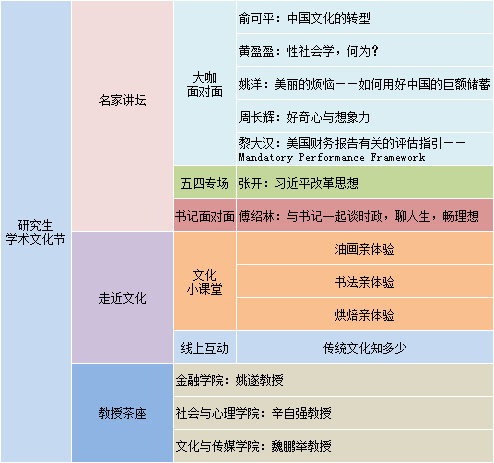 在文化小课堂里,你可以亲身体验油画和书法,还可以跟着我们学烘焙~学术文化节开幕后的每一周,我们都将在线上进行传统文化小知识测试,每周前几名同学会有大礼包哦!